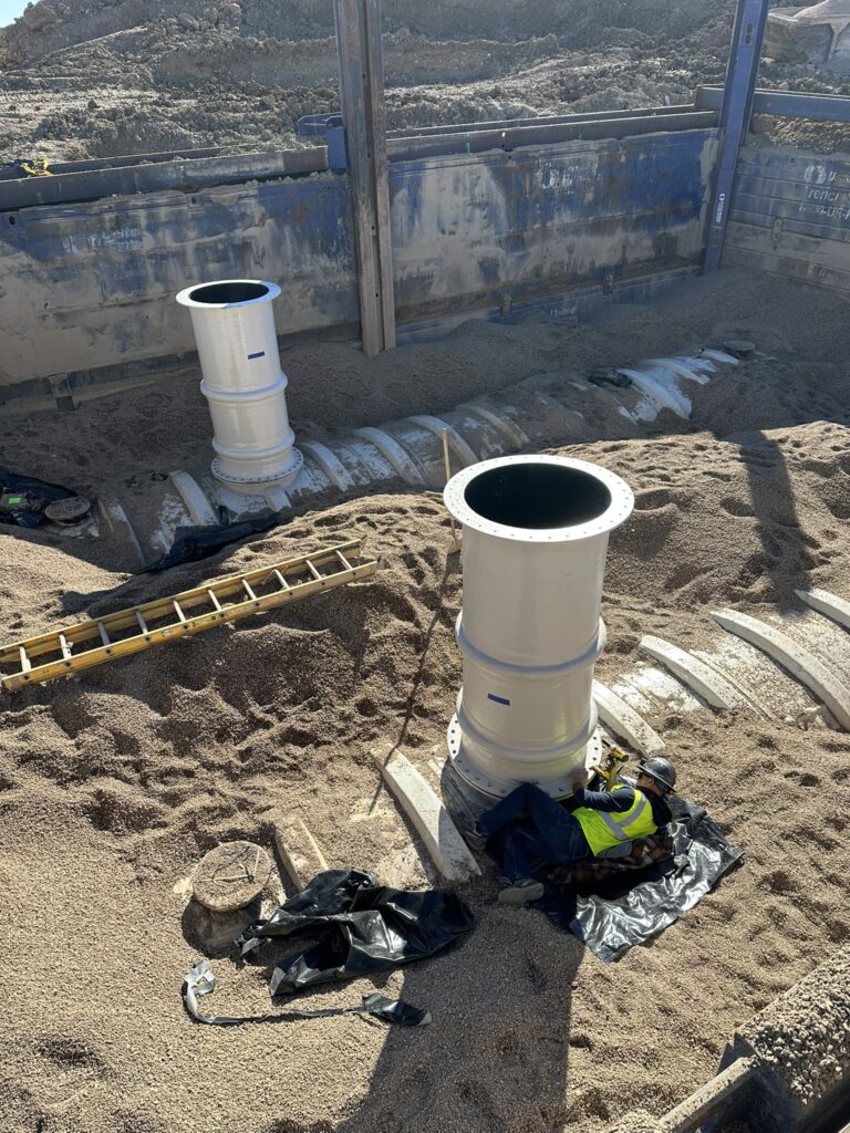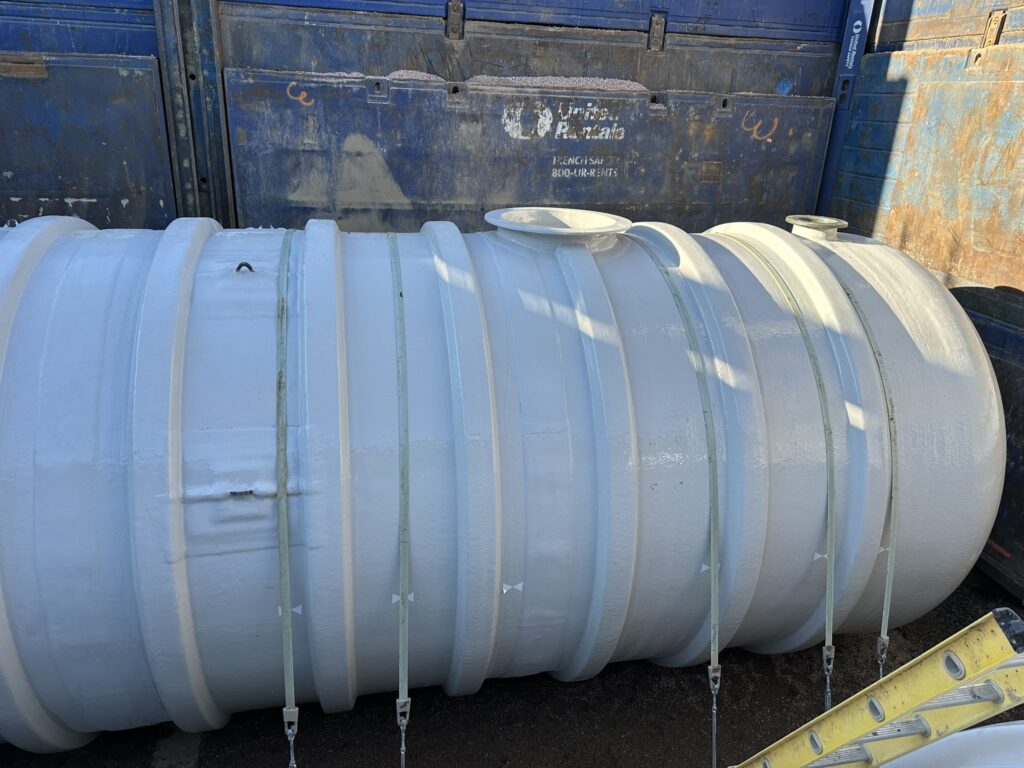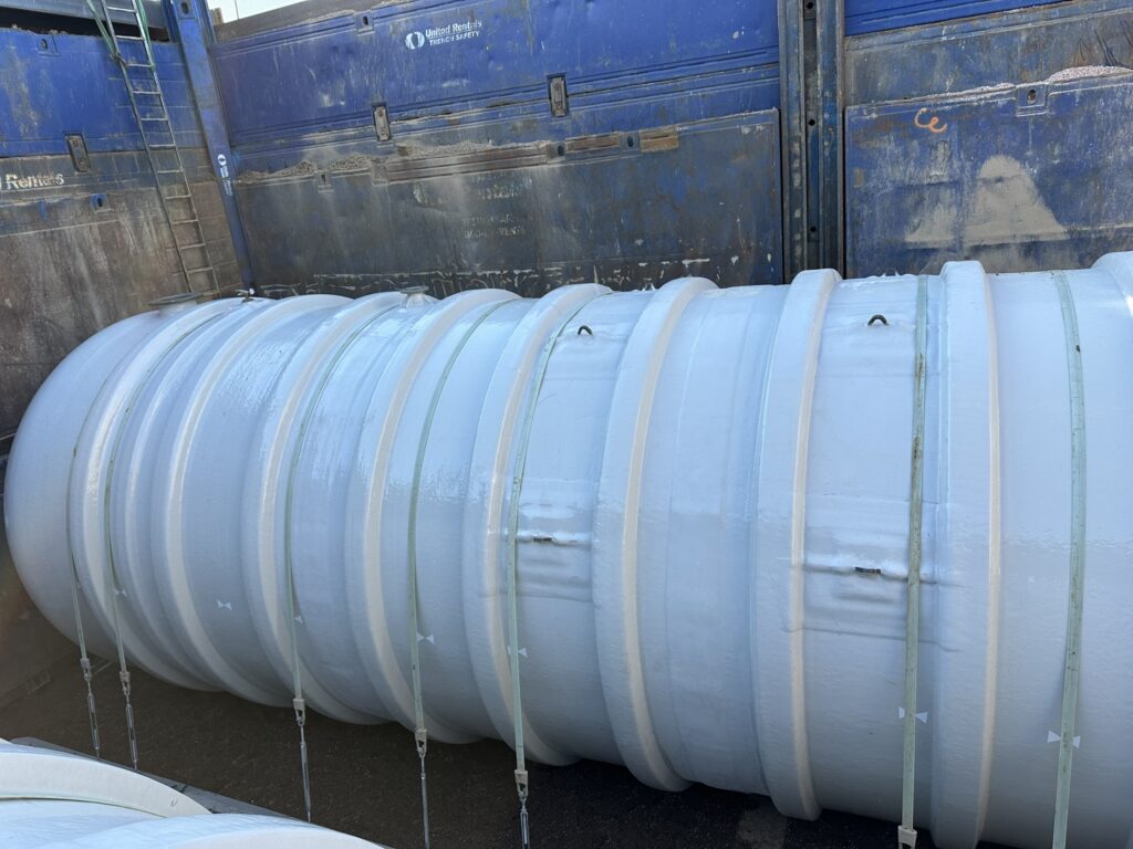 Project Description: When an Air Force Base requires a rapid emergency fire response capability, the storage system must be engineered for absolute reliability under the most demanding conditions. FTS delivered two custom double-wall AFFF storage tanks for Ellsworth Air Force Base, designed specifically for deep-burial installation in space-constrained military infrastructure. These specialized tanks provide 100% watertight containment of hazardous fire suppression foam while meeting strict military specifications and environmental regulations. The double-wall construction with dry interstitial monitoring ensures immediate leak detection, protecting both groundwater and mission-critical operations. Corrosion-resistant fiberglass construction handles the aggressive chemical properties of AFFF concentrate, delivering decades of maintenance-free performance where failure is not an option. With engineered anti-flotation systems for 14-foot burial depth and precision-flanged connections for rapid system integration, this turnkey solution arrived on-time and under budget—ensuring Ellsworth AFB maintains full emergency response readiness for years to come.